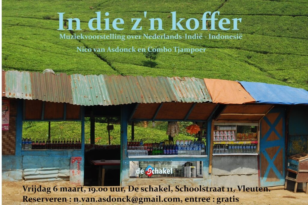 Op vrijdag 6 maart mag ik met het Combo Tjampoer mijn voorstelling In die z’n koffer laten zien/horen. Bestel je kaarten snel via n.van.asdonck@gmail.com, want het gaat goed met de reserveringen. De toegang is gratis.
